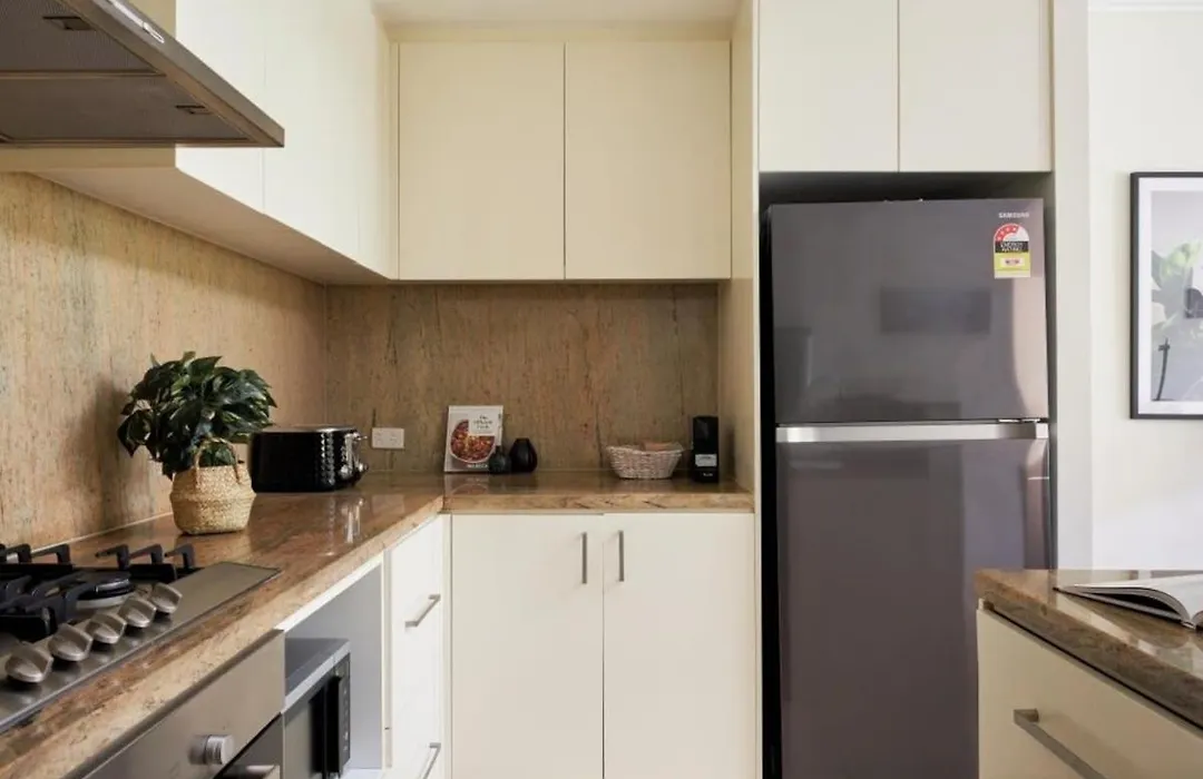Elektromos vízforraló, hűtő és sütő biztosított az önkiszolgáláshoz. A Sydney nemzetkozi repuloter repülőtér nagyjából egy 38 perces autóútra van.